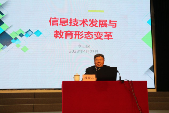 李志民教授作题为《信息技术发展与教育形态变革》的学术报告。李教授从人类文明发展、教育的本质属性、人工智能对教育的影响、信息技术改变教育形态等四个方面深刻阐述了信息技术发展对教育形态带来的变革。李志民在报告中特别提到人类正在进入信息社会,随着信息技术的迅速发展,教学工具、学习工具、考试评价工具、课程结构形态等都发生了演变,但是许多教育管理者、参与者的思想观念还未转变。李教授强调,互联网的发展必将促使大学功能的根本改变,信息技术发展将促进人类文明迈上新台阶,因此传统大学要及时转变观念,拥抱信息技术发展带来的变化。