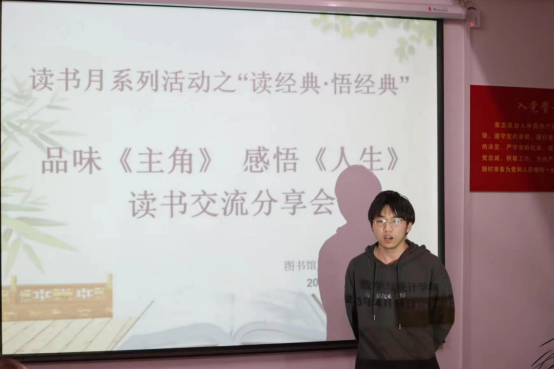 4月11日晚,图书馆、数学与统计学院联合举办了以“品味《主角》感悟《人生》”为主题的读书交流分享会,真正地体会到阅读一本书,就是在和伟大的人物亲切对话和心灵交汇;感受到无比强劲的精神源泉和力量。读书分享会上,同学们纷纷表示要利用好图书馆丰富的图书资源和数字资源,要珍惜大学期间宝贵的读书条件和机会,要多读书、读好书,在广泛的阅读中汲取更为丰富的知识营养。