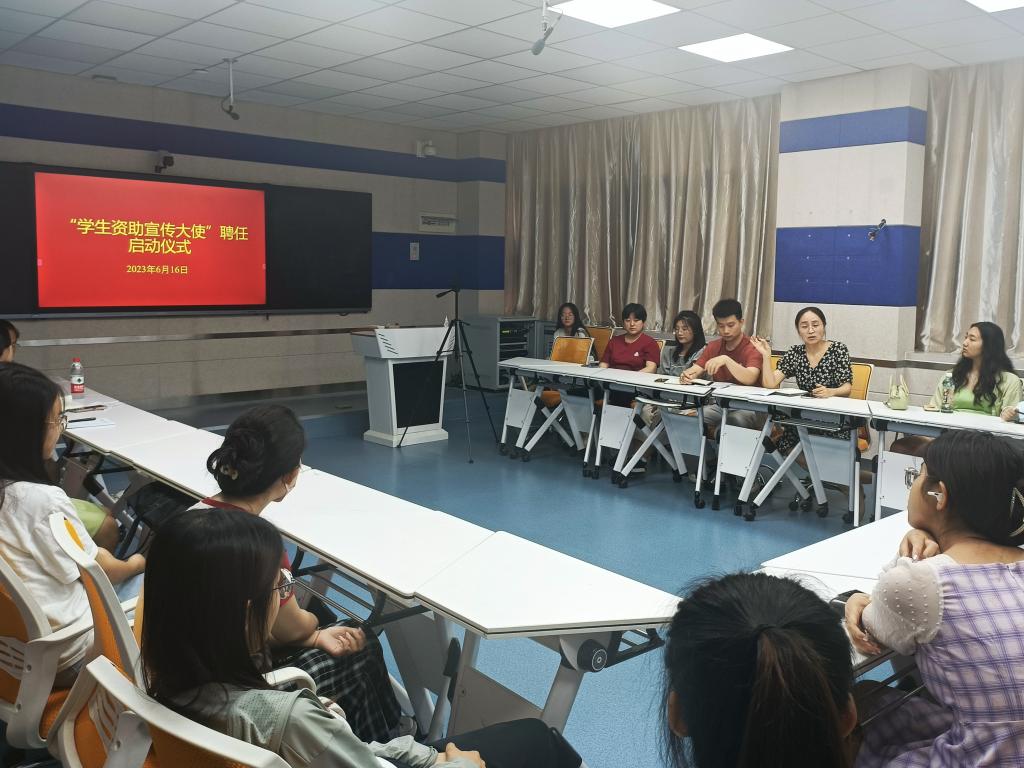 马雷蕾在讲话中强调了此次“学生资助宣传大使”聘任活动的目的和意义所在。她指出,“学生资助宣传大使”是学院学生资助工作的一次有益尝试,既有利于学生资助宣传,也有利于学生社会实践能力的培养。她希望“学生资助宣传大使”能真正成为学校资助政策的宣传者、励志典型的示范者,在充分了解国家资助政策,熟悉学校资助工作体系和流程的基础上,有效利用寒暑假和社会实践机会,进村入户宣传,回到母校现身说法,结合学校招生宣传,让更多的家庭经济困难学生了解资助政策,受用资助政策。同时希望“学生资助宣传大使”坚持努力学习,踏实工作,在同学中发挥表率作用,希望家庭经济困难学生勇于面对困难,自强不息,锤炼意志,积极进取,把党、政府、社会和学校的关爱化作成长成才的动力。