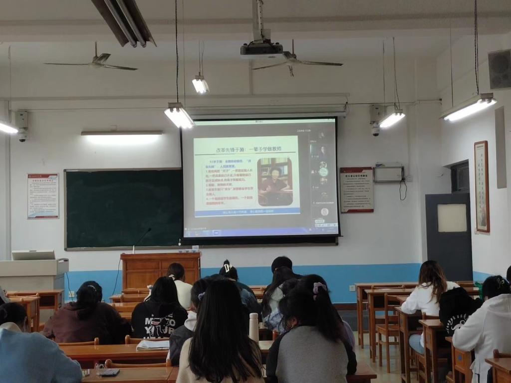 11月2日下午,为加强师范生的教育情怀、教学技能,学院特邀全国劳动模范、国务院特殊津贴专家、“共和国成立70周年纪念章”获得者、陕西省教学名师、延安中学首席数学教师、延安大学兼职教授蔺治萍老师作报告。因疫情防控需要,报告采取线上与线下相结合的形式进行。马克思主义学院院长张萍、思政系主任曹立新、青年教师周韶尉以及部分思想政治教育专业学生参加。报告会由副院长单剑峰主持。