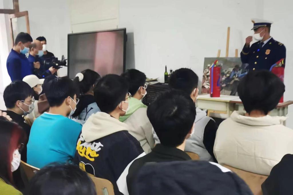 检查过后,许涛向师生代表作了消防安全知识培训讲座。讲座紧紧围绕我国“预防为主、防消结合”的消防法规宗旨,列举了校园相关的重大火灾故事案例,并通过视频播放等形式加深学生对火灾发生情况及危害的了解,教育大家“关注消防,关爱生命”。通过消防安全培训,进一步提高了师生的消防安全意识,增强了逃生自救能力和灭火器使用技能,达到了预期效果。
