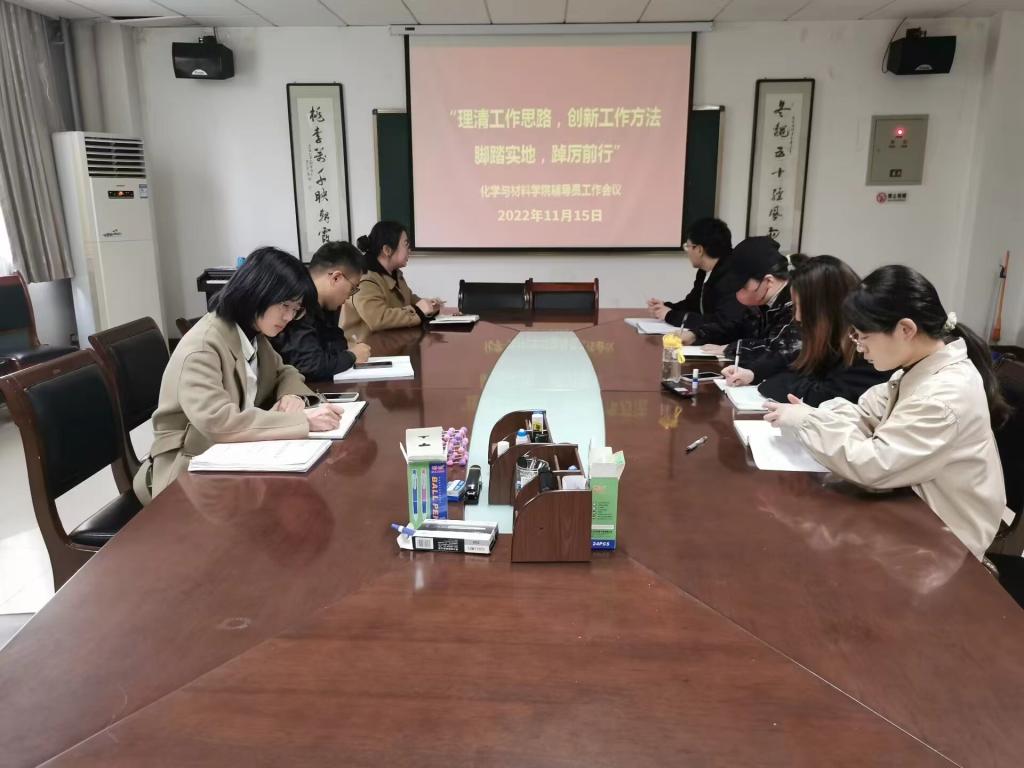 11月15日上午,化学与材料学院召开辅导员工作会议,党总支副书记任晓婷及全体辅导员参加,会议由团总支书记刘泽林主持。