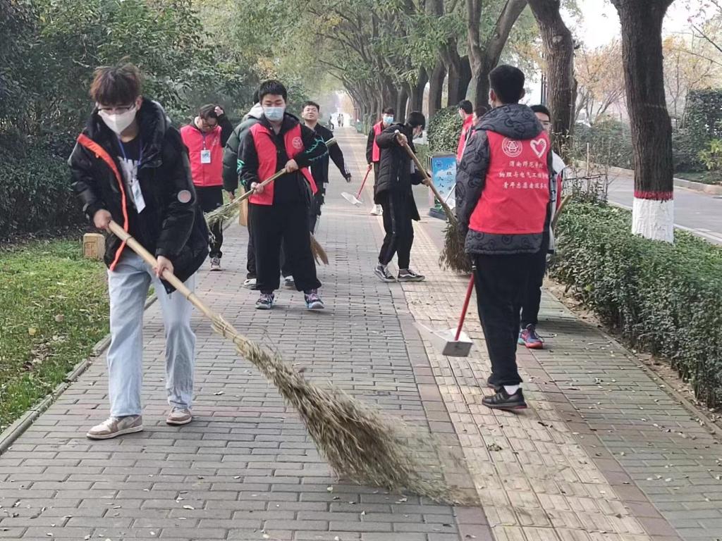 11月20日下午,物理与电气工程学院团总支组织40名志愿者们利用自己的周末时间开展校外清扫志愿活动。本次清扫活动区域主要是渭南电大至渭南市体育馆高架桥间的道路南侧及绿化带。