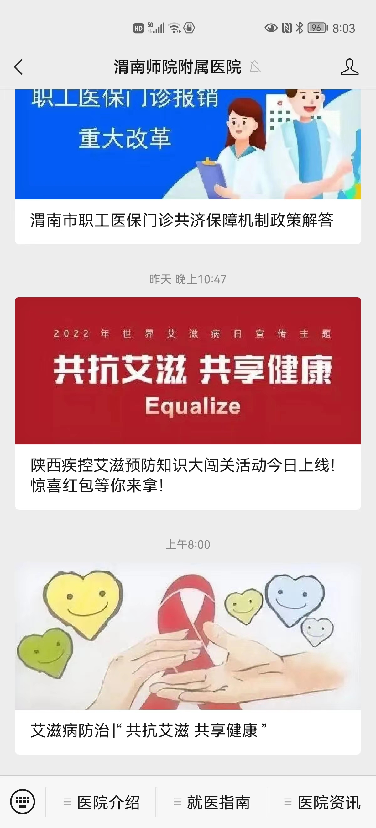 活动当天,附属医院还通过医院公众号和网站对艾滋病相关知识进行了线上宣传,并转发了陕西省疾控中心艾滋预防知识大闯关活动鼓励师生积极参与。同时在校园内摆放了艾滋病危害警示教育展板、悬挂横幅、学生公寓楼前张贴海报、医院门前游飞字幕滚动播出防艾宣传标语等形式宣传艾滋病的相关知识、危害、传播途径、紧急检测方法等,进一步提升广大师生防艾抗艾的意识和自我防护能力,营造“共抗艾滋、共享健康”的良好氛围,倡导师生积极参与,把预防艾滋病的知识传递到身边的每一个人。(通讯员 王鹏 审核人 段楚雷)