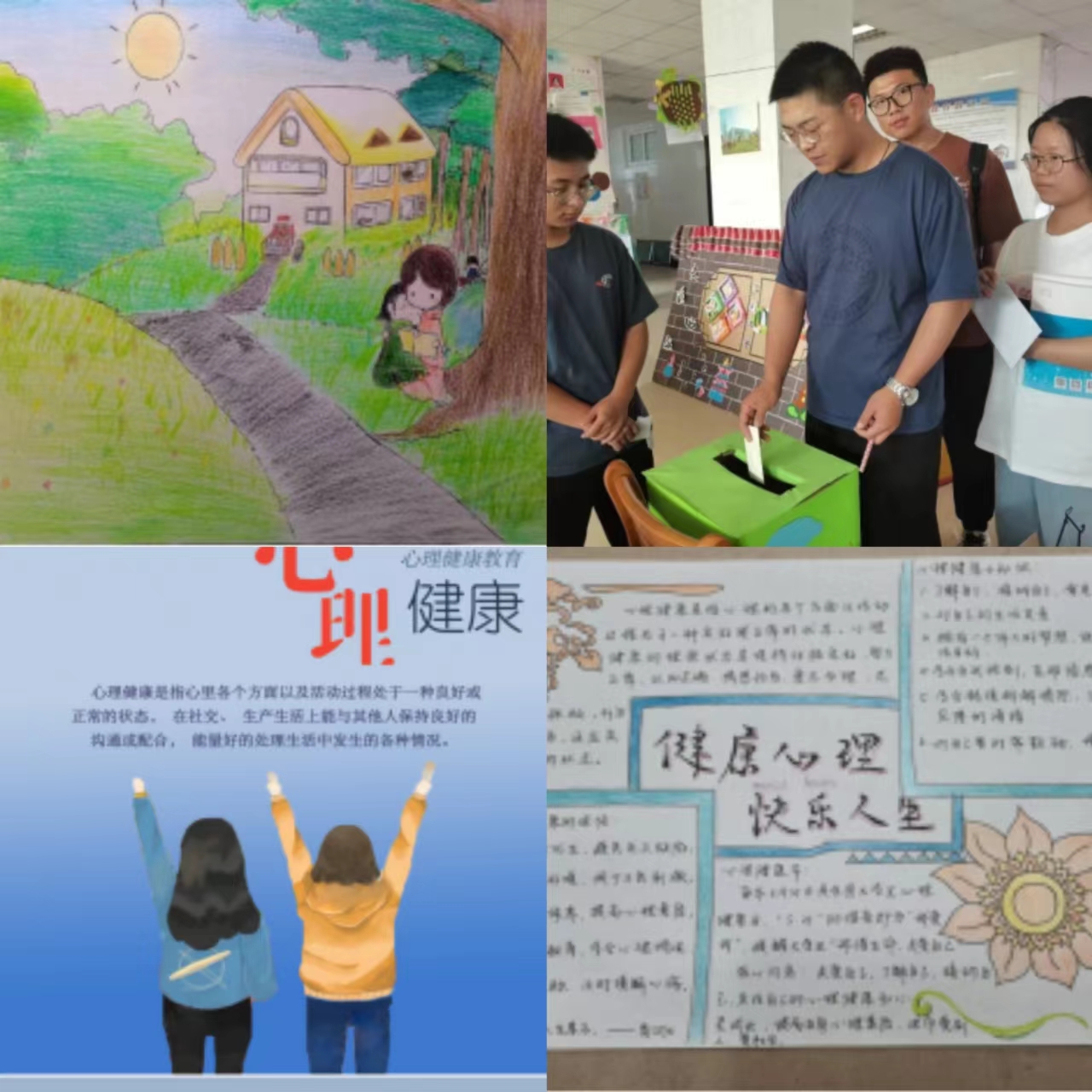 ——积极开展“阳光护航”系列活动。教育科学学院精心策划,以“实践润泽心灵·共谱育人新篇”为主题,结合学院专业特点,组织开展了“心理涂鸦·抒情画意”涂鸦活动、“写下心声·逐梦远航”心理漂流瓶活动、“心理健康·青春飞扬”手抄报活动、“完美心灵·你我共创”海报设计活动、“花季序曲”原创心理剧等系列主题活动。阳光护航活动形式多样、富有特色,助力学生提高心理素质和适应能力,有效应对各种心理危机。教育科学学院被评为“阳光护航”心理育人宣传季实践活动优秀组织单位,学院心理专干被评为jinnianhui今年会心理健康教育工作先进个人。