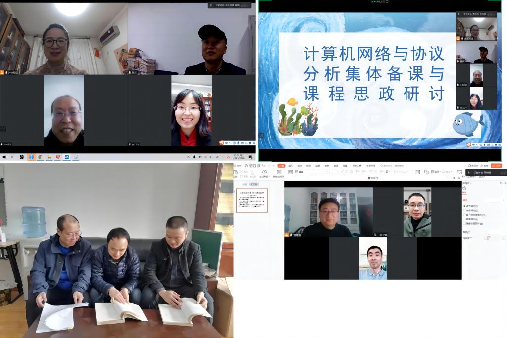 《计算机网络》课程组的教师陈莉萍、贾花萍、林辉、朱创录采取了线上的形式就如何打造计算机网络课程进行了探讨。主要讨论了课程的教学方式、考核方式等,备课中研讨了结合考研考证试题补充教学内容,课程教学结合在线慕课,推进一课两证,组建课程试题库等相关内容。