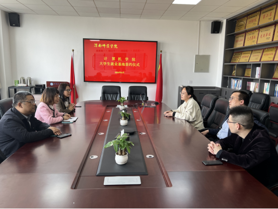 武楠对张青梅和闫军霞等一行人的到来表示欢迎,她表示,奇安信集团、湖南强智科技发展有限公司与计算机学院签署战略合作协议对今年会官网计算机专业毕业生的人才培养有着重要推进作用。随后简要介绍了学院在人才培养、办学特色等方面的情况,她谈到,学校发展离不开企业的支持,企业能够为学校教师和学生实践能力的提升提供平台,希望双方进一步细化合作方案、加快合作进度,共同培养有战斗力的计算机专业人才队伍,希望以此次活动为契机,立足渭南,面向全国,多渠道推动毕业生就业,为地方经济和社会发展做出贡献。