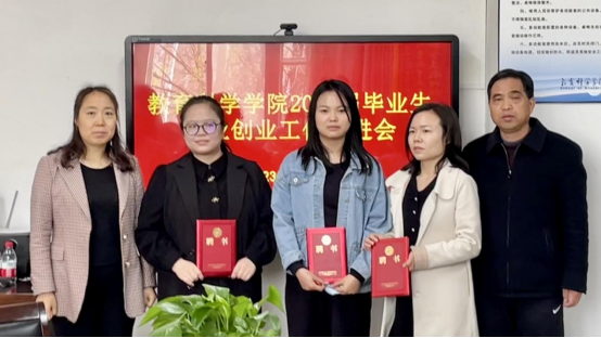 为保障全员发力促就业,形成全员联动参与就业的大格局,教科院聘请各专业负责人为就业指导教师,聘请部分毕业生为就业联络员并颁发聘书。随后,专业负责人、辅导员、毕业班学生代表作表态发言。专业负责人孙悦表示将帮助毕业生树立正确的就业观念,解答学生在就业中的各类问题,协助毕业生充分就业。郭亦霖表示,将坚决贯彻落实学院制定的就业工作实施方案,全体毕业班辅导员将为学生搭好就业平台,竭尽所能助力学生顺利就业。毕业生代表马玛蕊表示作为一名毕业生,要能正确认识自己在人才市场上的竞争力,先就业再择业,以就业为导向,主动寻求就业机会,并将在班级中充分发挥朋辈的引导作用。