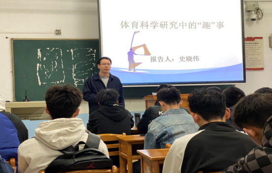 3月30日晚,体育学院举办“jinnianhui今年会2023年百场名家学术”报告会,报告由体育学院史晓伟博士作题为“体育研究中的‘趣’事”学术讲座,全体大三学生和部分中青年教师参加。会议由体育学院科研副院长杨枭主持。