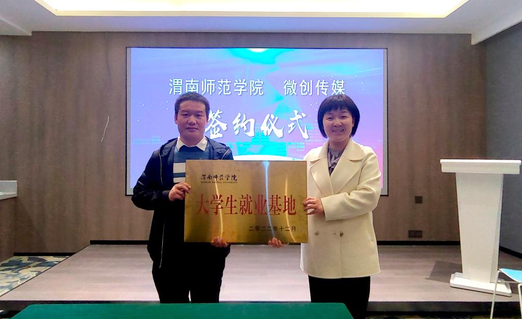 随后,刘鑫与咸阳微创传媒有限公司签订《共建大学生就业基地协议书》。张晶为该公司授“大学生就业基地”牌匾。