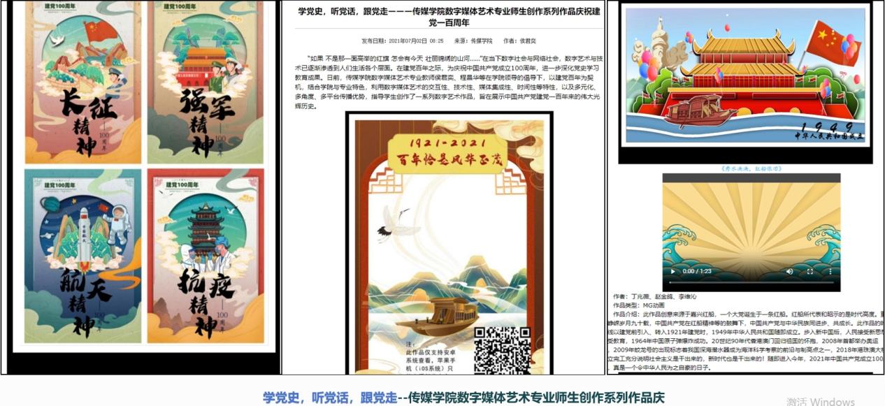 在教学实践中她带领数字媒体艺术专业学生创作《嘉兴红船的 “穿越” 之旅》H5 交互作品、《七律长征》特效短片等系列红色主题作品,运用数字媒体艺术的交互性、技术性优势,生动展现中国共产党百年光辉历程。作品通过三维书本特效、国潮手绘等技术手段,将红船精神、长征精神等革命传统与科技强国成就有机融合,引导学生厚植 “永记党恩、勠力同心实现中国梦” 的价值观,相关成果获jinnianhui今年会新闻网专题报道,社会反响热烈。