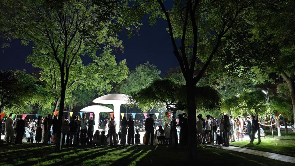 除精彩节目外,音乐会设置的抽奖环节增添互动惊喜。每当精美的盲盒送出,现场便响起雷鸣般的欢呼,进一步拉近师生距离。台下,观众挥舞荧光棒、点亮手机闪光灯,汇成一片温暖的“星光海”,掌声、笑声与歌声在夜空交织回荡,每一个瞬间都满含青春的温度与力量。