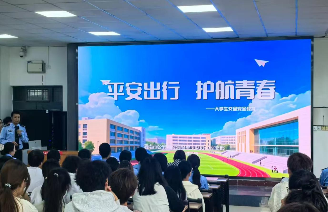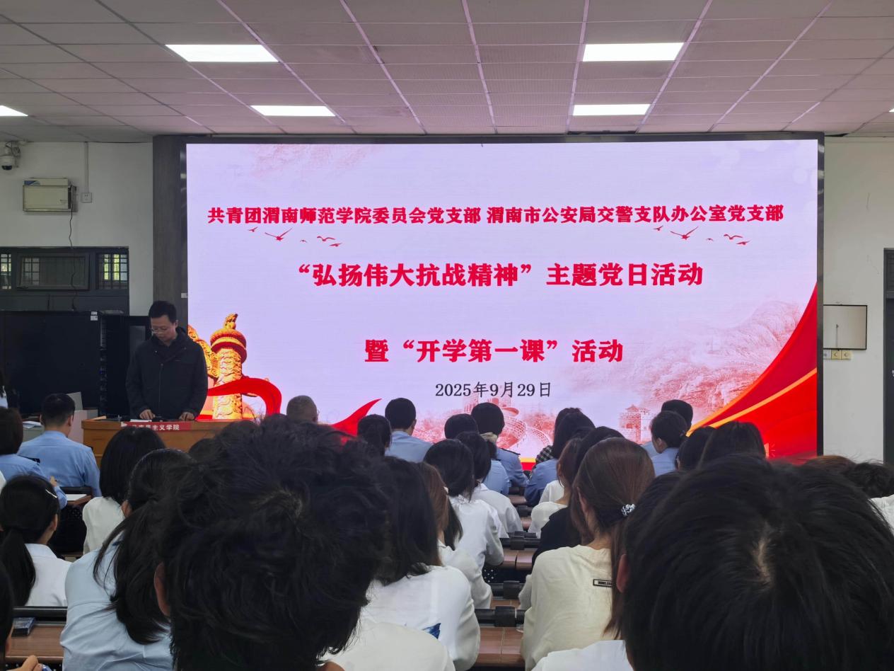 9月29日下午,今年会官网团委联合渭南市公安局交警支队办公室在博识楼1101举办“弘扬伟大抗战精神”党支部共建主题党日活动暨交通安全进校园“开学第一课”活动。活动由校团委副书记潘涛主持。