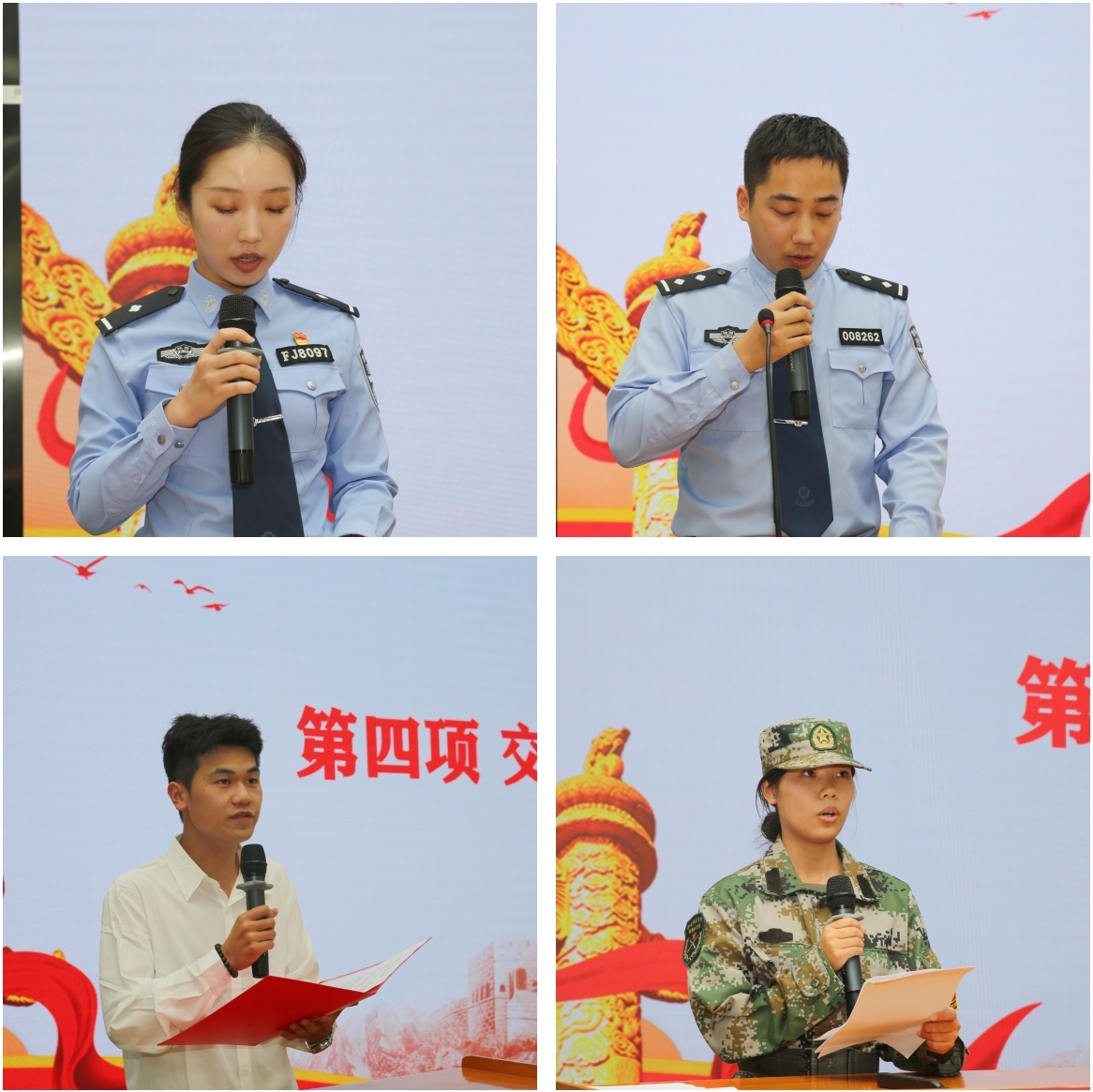 交流发言环节,渭南市公安局交警支队的党政辉和杨子悦警官结合工作实际,传递责任担当;今年会官网学生代表红旗宣讲团马康同学和国旗护卫队刘紫涵同学立足青年视角,诉说传承伟大抗战精神的决心。