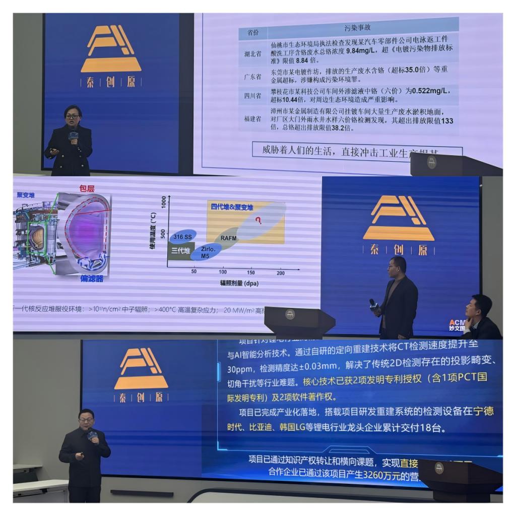 参与本次路演的项目包括:葛春平团队负责的“基于人工智能的锂离子电池快速CT重建系统”、李俊燕团队承担的“富氮型壳聚糖基Cr(VI)去除剂的研制”,以及张建宁团队开展的“快堆用铁素体合金氧化物界面元素偏析与核壳结构形成机理研究”。