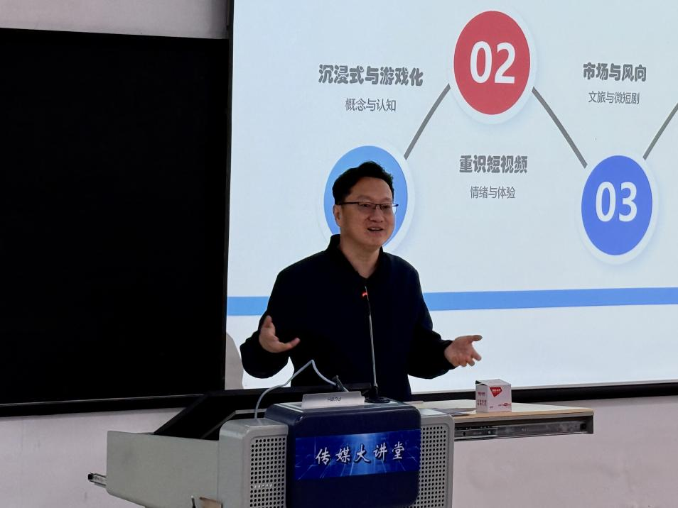 研讨会第一阶段于11月5日举办。陕西省动漫游戏行业协会会长刘巍以《沉浸式新文旅的商业本质》为题,从沉浸式体验的概念内涵与行业发展趋势出发,分析了短视频与游戏在传播机制上的内在关联,并就微短剧的创作新动向进行了阐述。