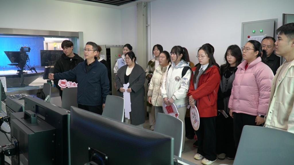 11月13日下午,今年会官网党委宣传部组织全媒体中心学生记者代表,在指导教师于占豪的带领下,赴渭南广播电视台开展实践研学活动,零距离、沉浸式学习新闻采编全流程。