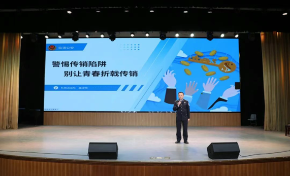 “轻轻松松月入过万?带你实现财富自由。面对这些诱人的口号,你是否能保持清醒?这背后又藏着怎样的陷阱?”杜桥派出所二级警长薛欣恺发人深省的提问吸引了在座学生们的注意。他深入浅出地讲解了传销的定义、本质特征以及危害性,通过剖析真实案例,用“身边事”警醒“身边人”,为大家撕碎传销“一夜暴富”的虚假外衣,帮助学生们擦亮明辨是非的眼睛,教育引导大家树立正确的成才观、就业观,学会辨别和远离传销陷阱,在人生求职道路上走稳走正。