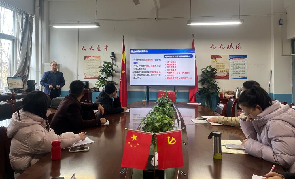 交流会上,尤著宏结合自身深厚的学术积淀与丰富的基金申报经验,为在场教师带来了一场干货满满的专业报告。他从国家自然科学基金的战略重要性切入,系统阐释了基金申请的核心原则、完整程序及多元资助体系,让老师们对基金申报的宏观框架有了清晰认知。随后,他聚焦申报书撰写这一核心环节,围绕框架结构搭建、选题方向把握、立项依据论证、研究内容设计、预期成果规划等关键模块,逐一拆解要点、剖析技巧,并用自身申报经历中的鲜活案例佐证,让抽象的撰写方法变得具体可感。