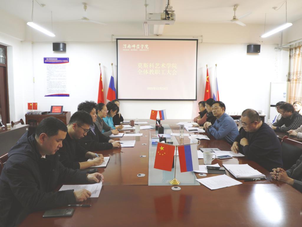 12月24日下午,莫斯科艺术学院召开2025年教职工代表大会暨工会会员代表大会,全体教职工参会,会议由学院党总支副书记叶晓燕主持。