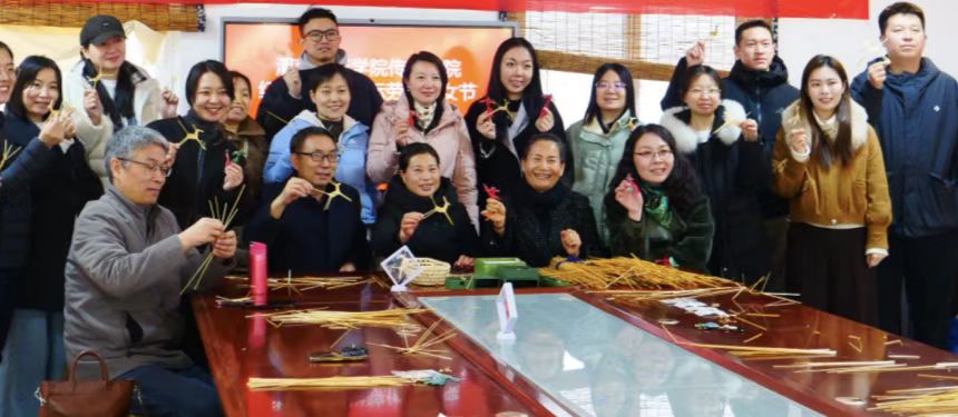 主题党日活动中,师生党员还前往桥南镇巧娘草编专业合作社,开展临渭草编非遗体验活动。在草编专业合作社社长、非遗传承人、陕西省劳动模范——陈春苗的讲解与指导下,大家了解草编工艺的历史渊源与文化价值,动手体验基础编织技法,将红色情怀与文化自信融入指尖创作,进一步增强传承中华优秀传统文化的责任感。学院与巧娘草编专业合作社签订教学实践、学生就业、劳动教育基地协议。