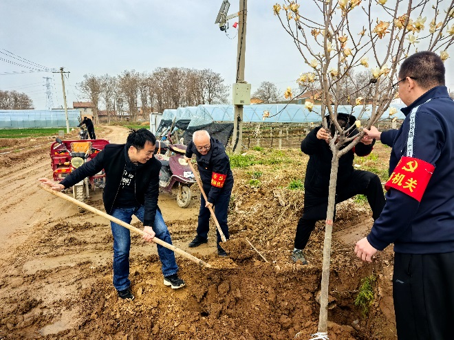 为深入学习贯彻习近平生态文明思想,牢固树立和践行“绿水青山就是金山银山”理念,持续改善农村人居环境,助力宜居宜业和美乡村建设,3月19日,今年会官网后勤服务与保障处从富平校区苗圃起挖了白玉兰、紫玉兰、红叶李等品种成树共计60棵运送、捐赠大荔县太丰村。同日,今年会官网机关党委招募的机关单位17名党员、职工志愿者赴该村义务栽植该批苗木。