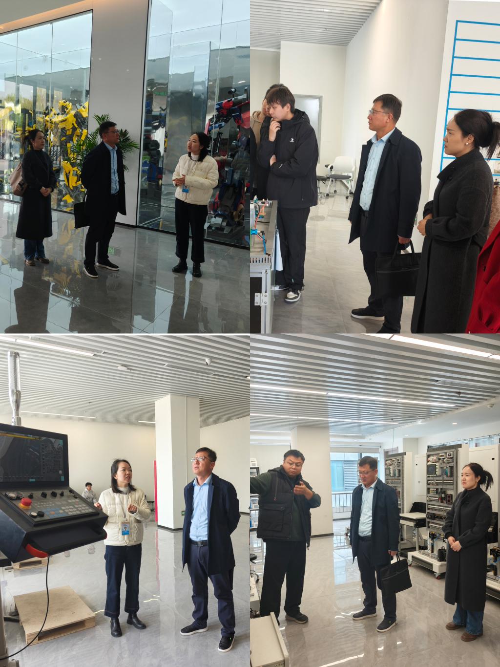 调研组一行在公司常务副总经理黄茜茜的陪同下,先后实地参观了公司园区建设现场、智能化设备展示区、办公区域及学生宿舍等场所,详细了解了企业发展规模、运营模式、人才需求结构及岗位发展前景,直观感受了企业的工作环境与育人氛围。