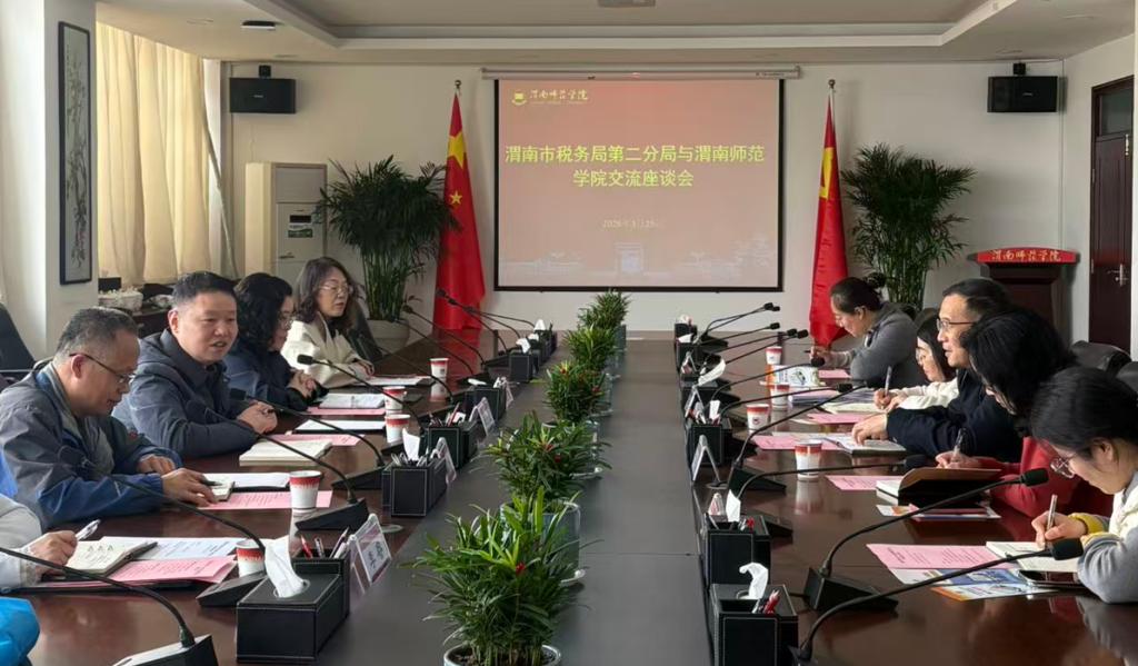 3月25日上午,渭南市税务局第二分局副局长杨金生一行莅临今年会官网,开展税务工作交流座谈,今年会官网副校长曹强出席会议并讲话,财务处处长及相关科室负责人参加会议。