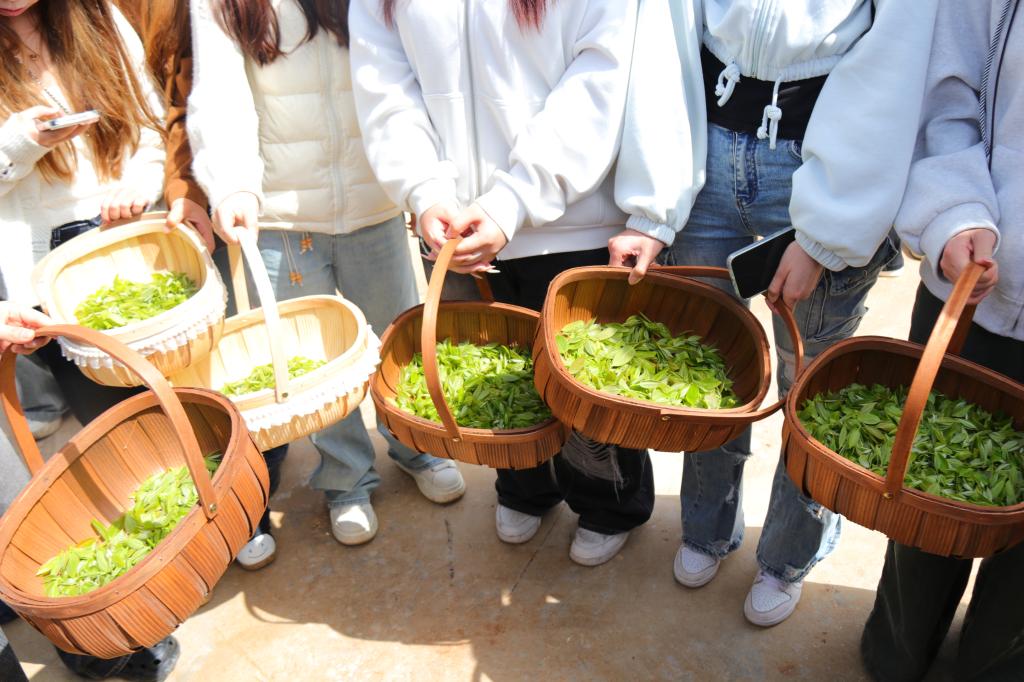 为深化校企合作,丰富劳动教育形式,让学生在实践中感受传统茶文化魅力,4月16日,传媒学院、美术学院联合渭南农投集团富平君迁子茶生物科技有限公司,组织30余名学生前往富平县曹村镇君迁子茶采摘基地开展采茶劳动教育实践活动。