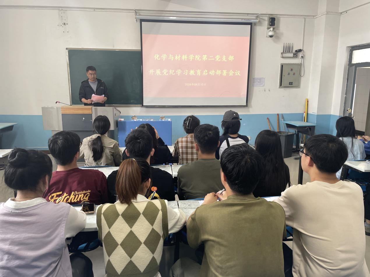 任晓婷传达了学校关于2024年开展党纪学习教育的工作安排,会议指出,党纪学习教育要聚焦解决一些党员、干部对党规党纪不上心、不了解、不掌握等问题。会议强调党总支将组织全体党员、干部认真学习《中国共产党纪律处分条例》,做到学纪、知纪、明纪、守纪,进一步强化党员、干部纪律意识,始终做到忠诚干净担当,为推进学院学校高质量发展提供坚强保障。随后,就化学与材料学院党总支党纪学习教育的相关工作进行了安排部署。