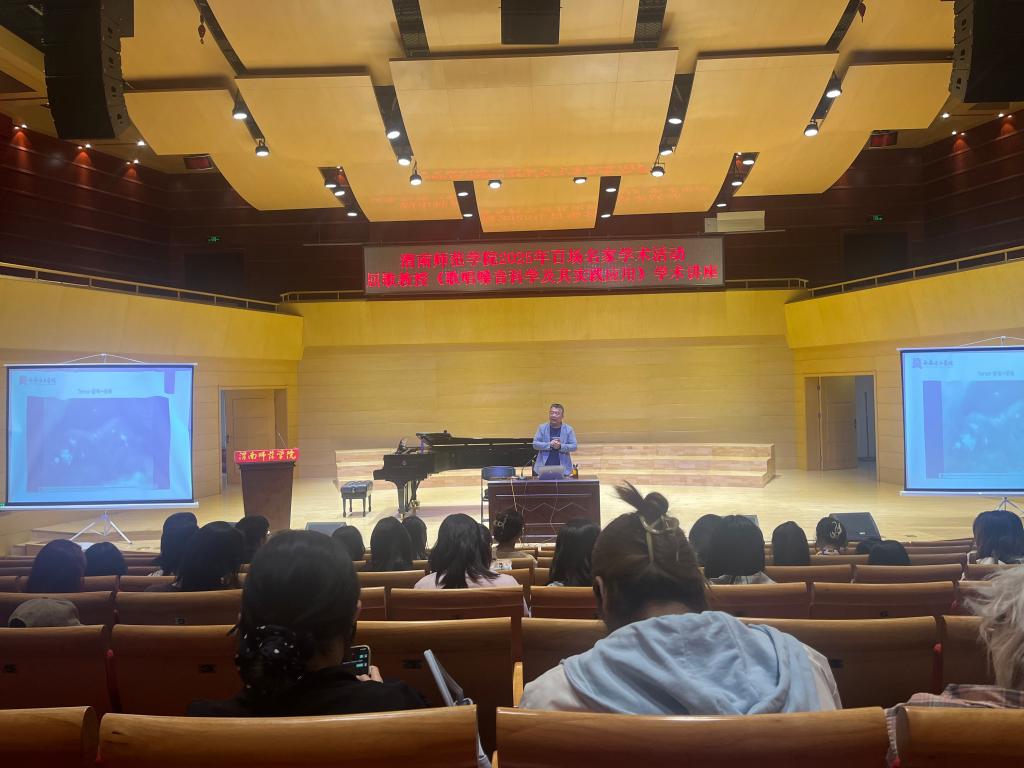 5月9日下午,莫斯科艺术学院特邀艺术嗓音科技陕西省高等学校重点实验室主任、嗓音研究中心负责人屈歌教授为师生作《歌唱嗓音科学及其实践应用》学术讲座,学院音乐学、学前教育专业师生共计200人参加。由莫斯科艺术学院副院长梁卫民主持。