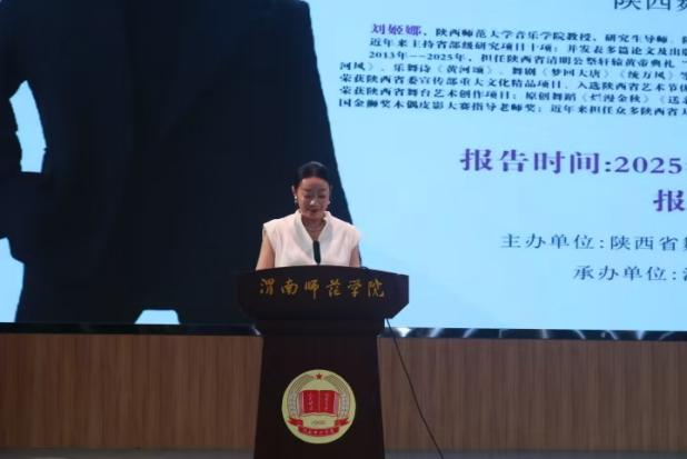 9月23日下午,音乐学院、陕西省舞蹈家协会主办,舞蹈系承办的“探寻唐代舞蹈图像的动态转化之美”讲座在演艺厅举行。讲座特邀陕西师范大学音乐学院教授、研究生导师,陕西省舞蹈家协会主席,陕西省“六个一批”人才、“百青”人才刘姬娜担任主讲人。陕西省舞蹈家协会秘书长陈智勇,副秘书长丁娟,音乐学院院长刘鹏以及舞蹈系全体师生共同聆听了讲座,讲座由音乐学院教师杜娟主持。
