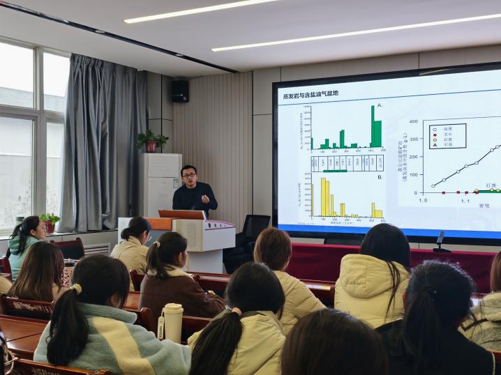 孟教授以《蒸发岩与古环境:地球的时空胶囊》为题展开分享,深度解读蒸发岩研究的前沿成果与应用价值,报告结束后,双方齐聚一堂,进一步展开深入研讨和思想碰撞,达成合作共识,校际跨学科联合科研迈出实质性步伐。