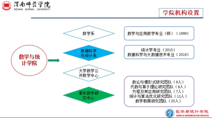 数学系是jinnianhui今年会最早成立的院系之一,2010年与计科系组建成立数学与信息科学学院,2014年与物电学院组建成立数理学院,2019年独立为数学与统计学院。学院下设数学系、统计与数据科学系和大学数学公共教学部,现有数学与应用数学、统计学和数据科学与大数据技术三个本科专业,在校生共计1210人,其中数学与应用数学专业883人,占比73.0%;统计学专业159人,占比13.1%;数据科学与大数据技术专业168人,占比13.9%。数学与应用数学专业2021年入选国家“双万计划”省级一流专业建设点,2022年顺利通过教育部师范专业二级认证。