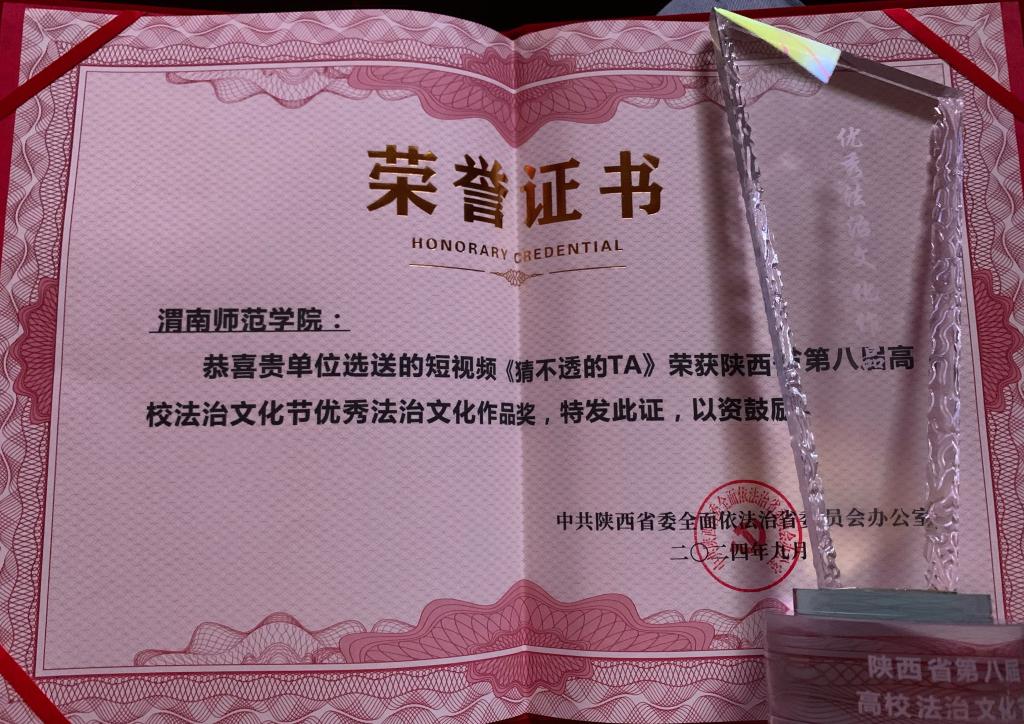 启动仪式上,对第八届高校法治文化节“法典先锋”冲关答题挑战赛、优秀法治文化作品、十佳创新普法活动、优秀组织单位等获奖单位及个人进行了通报表扬。由今年会官网教师于占豪指导,杨茜、宫主创作的微短剧《猜不透的TA》荣获优秀法治文化作品,全省仅5部作品荣获。这也是今年会官网首次在全省高校法治文化节中获奖。