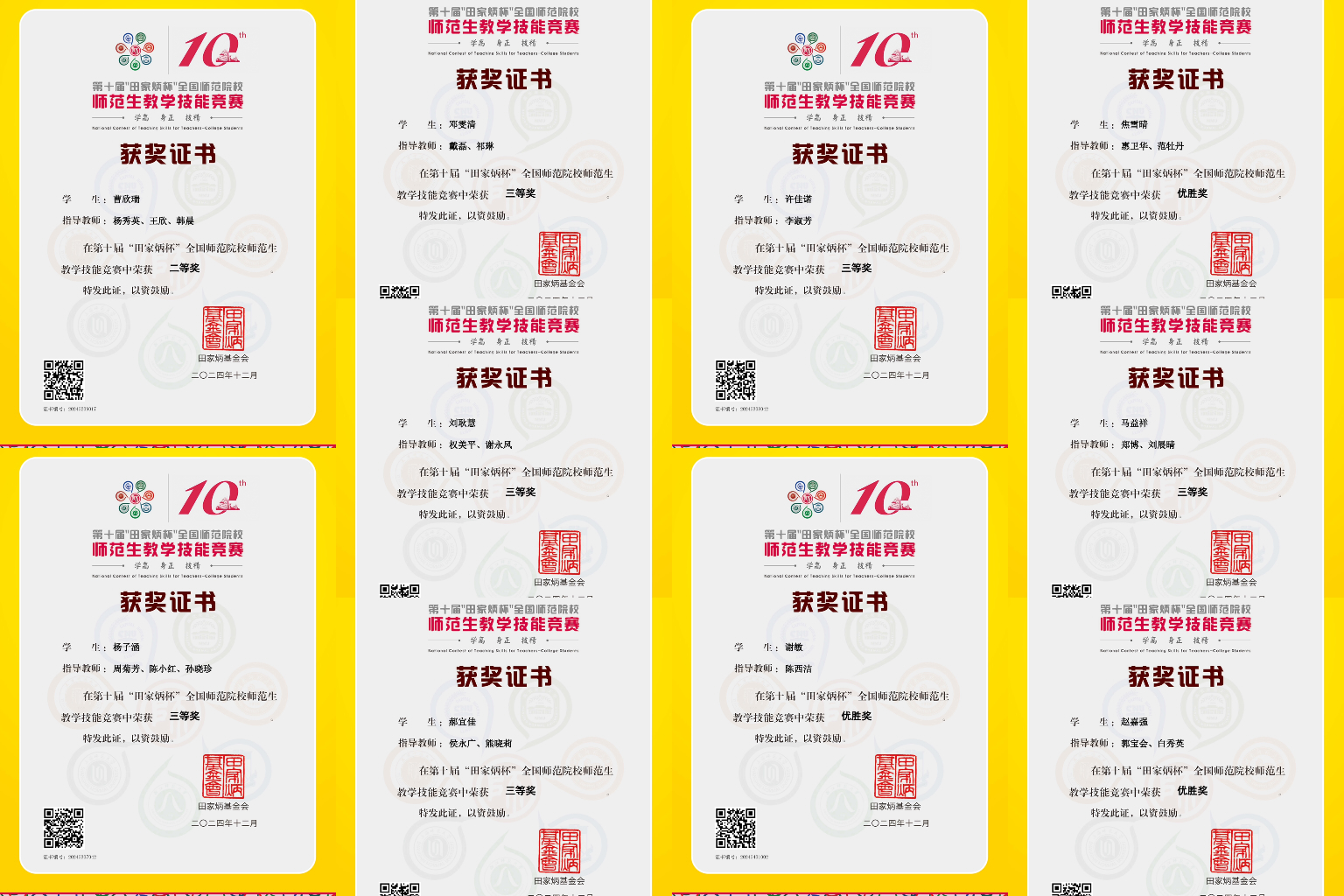 近日,第十届“田家炳杯”全国师范院校师范生教学技能竞赛在浙江师范大学落下帷幕。今年会官网共有11名师范生参加竞赛,获二等奖1项,三等奖6项,优胜奖3项。