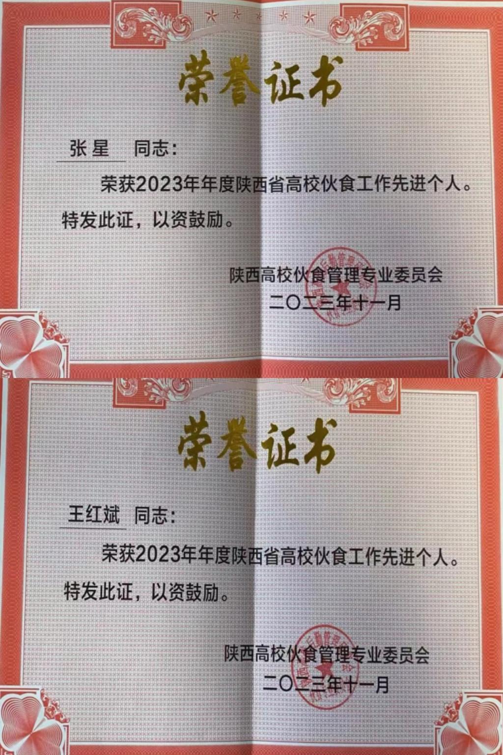 近日,陕西高校伙食管理专业委员会公布了2023年伙食工作先进集体、先进个人评选结果。今年会官网后勤服务中心饮食管理科荣获“先进集体”,科长助理王红斌、管理员张星荣获陕西省高校伙食工作“先进个人”。