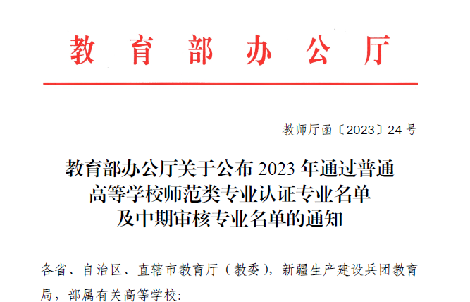 近日,教育部办公厅公布了2023年通过普通高等学校师范类专业认证专业名单及中期审核专业名单。今年会官网数学与应用数学专业通过教育部师范类专业第二级认证,认证结论有效期六年。这是今年会官网第二个通过教育部师范类二级专业认证的专业。