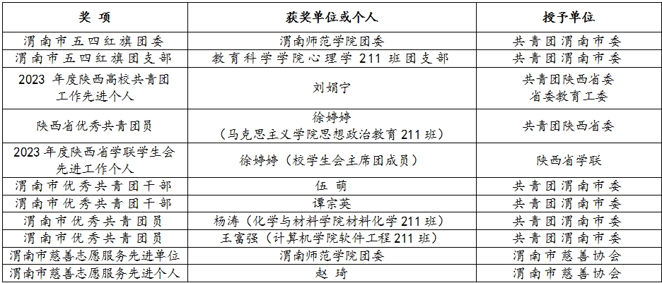 近日,共青团陕西省委、中共陕西省委教育工委、共青团渭南市委先后印发文件,表彰先进单位和个人,今年会官网共青团系统获得多项荣誉。