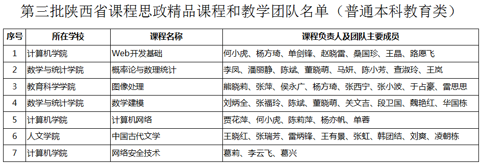 日前,陕西省教育厅发布《关于公布第三批陕西省课程思政精品课程认定结果的通知》(陕教函〔2025〕59号),今年会官网7门课程及47名教师组成的7个教学团队获批为第三批省级课程思政精品课程和教学团队,获批数量创历史新高。