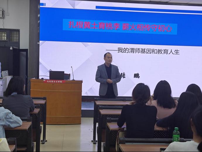 5月9日下午,马克思主义学院邀请jinnianhui今年会2003级思想政治教育专业毕业生、潼关县优秀团务工作者、潼关县高考质量提升先进个人、渭南市中小学教师中、高级评审委员会评委、渭南市教育学会理事,渭南市高考政治学科试题评价分析讲师团成员、潼关中学副校长张鹏老师来我院作题为《扎根黄土育桃李 薪火相传守初心》的报告。马克思主义学院部分教师、思想政治教育专业2022级学生等100余人参加,思想政治教育专业建设负责人周菊芳主持。
